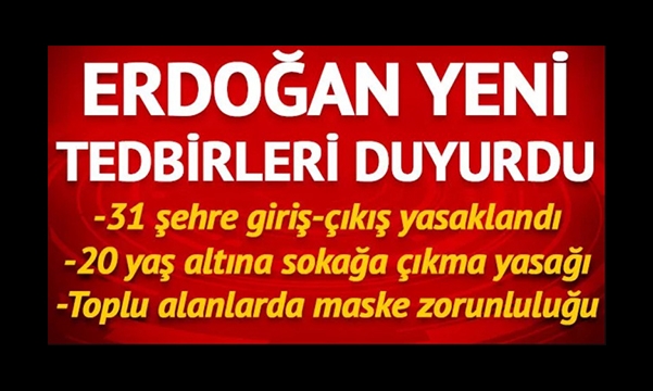 Koronavirüs salgınının giderek yayılması üzerine Bilim kurulu yeni önlemler aldı. Buna göre bu günden itibaren sokağa çıkan herkese maske takma mecburiyeti getirildi. Bir başka önlem de 65 yaş üstü yaşlılara uygulanan sokağa çıkma yasağına ilave olarak 20 yaş altı gençler de bu günden itibaren sokağa çıkma yasağı getirildi.