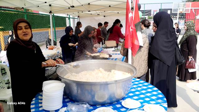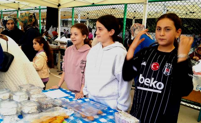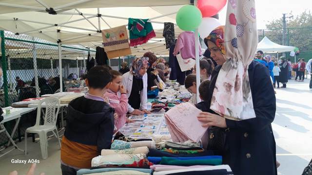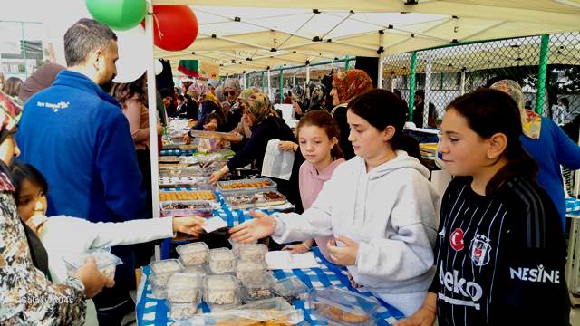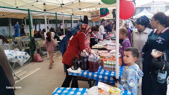 Okul bahçesinde düzenlenen kermeste yok yoktu. Oldukça zengin menüde döner, yiyecek içecek, çeşitli tatlılar, keşkek ve kadınlarımızın el emeği göz nuru el işleri gösterilen ilgi nedeniyle gün içinde tükendi.