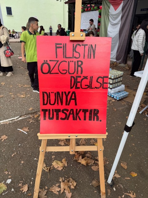 Öğrenciler, okul bahçesinde düzenlenen kermeste evlerinden getirdikleri yiyecekleri, el emeği ürünleri satışa sundular ve elde edecekleri geliri de hiç zaman geçirmeden Filistin’e ulaştıracaklarını söylediler ve öğrencilerde bu konuda kendilerine yardımcı olan Velilerine, Okul Müdür ve İdarecilerle Öğretmenlerine teşekkür ettiler.