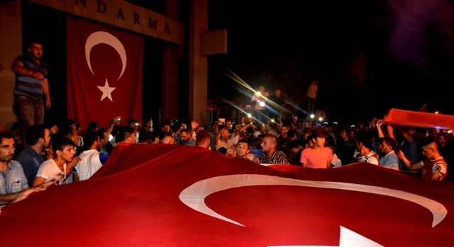 Burada Kahrolsun PKK, Şehitler ölmez Vatan bölünmez ve Tekbir getiren kalabalık Jandarma Karakol komutanı Jandarma Yüzbaşı Mustafa Hekimoğlu’na Bayrak teslimi yaptılar. Bayrak tesliminde Hekimoğlu Duygulu anlar yaşadı.