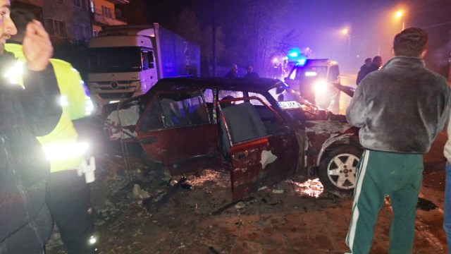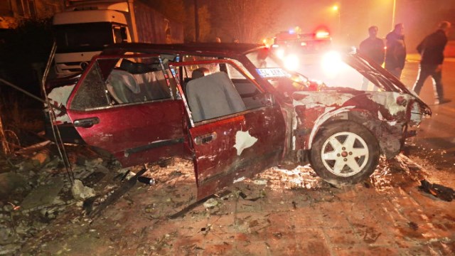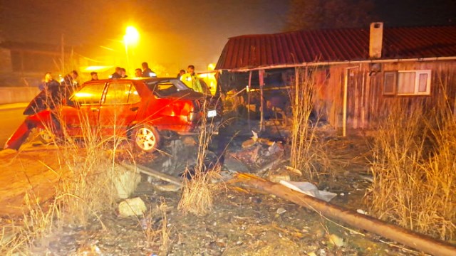 Edinilen bilgiye göre sürücüsünün direksiyon hakimiyetini kaybetmesi sonucu otomobil hızlı b ir şekilde bir evin avlusuna çarptı ve duvarı aşarak telefon direğine çarpıp durabildi.