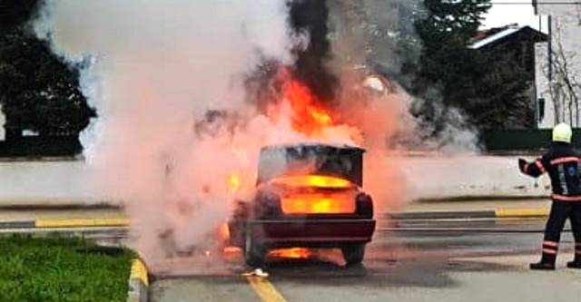 İlk kaza Pazarköyü Mahallesinde meydana geldi. H.G. ye ait olduğu belirlenen otomobil yandı ve kullanılmaz hala geldi.
