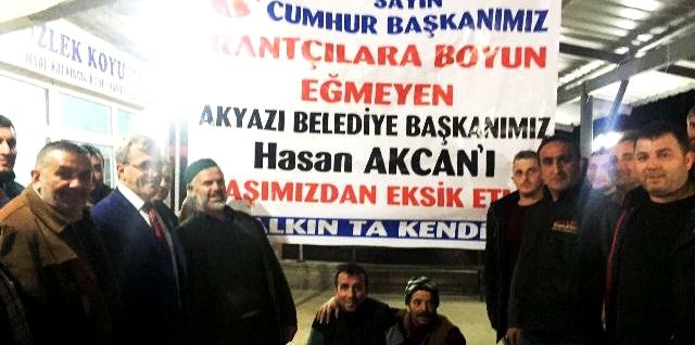 16 Mart Günü yapılan miting sırasında bazı Akyazılılar tarafından açılan pankarta ilk pankartlı cevap Güzlek Mahallesi sakinlerinden geldi. Güzlek Mahallesine başkan yardımcısı, meclis üyeleri ve daire müdürleri ile birlikte adeta çıkartma yapan Belediye Başkanı Hasan Akcan, burada da pankartlarla karşılandı. Güzlek Mahallesi sakinleri açtıkları pankartta Sayın Cumhurbaşkanımız rantçılara boyun eğmeyen Akyazı Belediye Başkanımız Hasan Akcan’ı başımızdan eksik etme. Halkın ta kendisi yazılıydı ve Belediye Başkanı Akcan’a destek verdiklerini açtıkları bu pankartla deklere ediyorlardı.