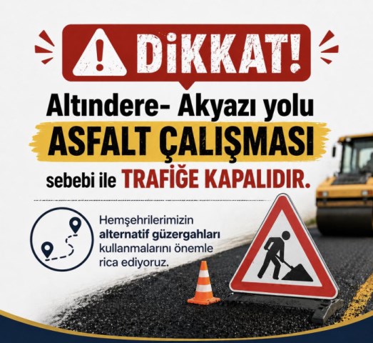 Akyazı belediyesi asfalt serimine başladığı için Akyazı Altındere arasındaki yolu trafiğe kapattı.