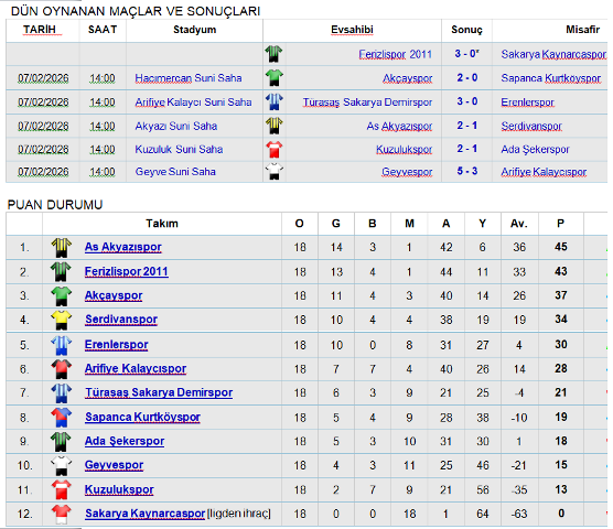 A gurubunun diğer Akyazı takımı Kuzulukspor da Kuzuluk sahasında konuk ettiği Ada Şekerspor takımını 2-1 yenmeyi başardı. Kuzulukspıor 13 puanla ligin en son sırasında bulunuyor.