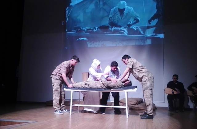 Buradaki törenin ardından Büyükşehir Belediyesi Sosyal gelişim merkezi salonunda Şehit Yüzbaşı Halil İbrahim Sert Anadolu Lisesince düzenlenen programa geçildi.