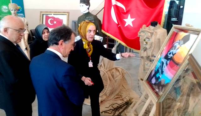 Törenin sonrasında Akyazı Halk Eğitimi Merkezi Müdürlüğü kursiyerleri ve öğretmenlerince hazırlanan sergi gezildi.