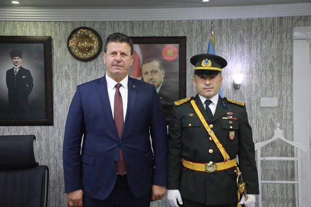 Ziyaret Belediye Başkanı Soykan’ın makamında gerçekleşti. Ziyarette Komutan Kılıçoğlu, hem başkan Soykan’ı makamında ziyaret ediyorum hem de yaptığı çalışmalarla ilgili geniş bilgiler alıyorum dedi.