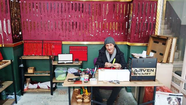 İşyerinde damla kehribar, bufalo boynuzu, koç boynuzu, deve kemiği, Erzurum oltu, narçıl, kuka ve her çeşit ağaç grubu teşbih satan Kudret Akman, ben çocukların ve özellikle de gençlerin ağabeyi, büyüklerimin de çocukları Kudret Akman’ım. Geçimimi teşbihlerimi satarak ve alın teri dökerek helalinden kazanıyorum açıklaması yaptı.