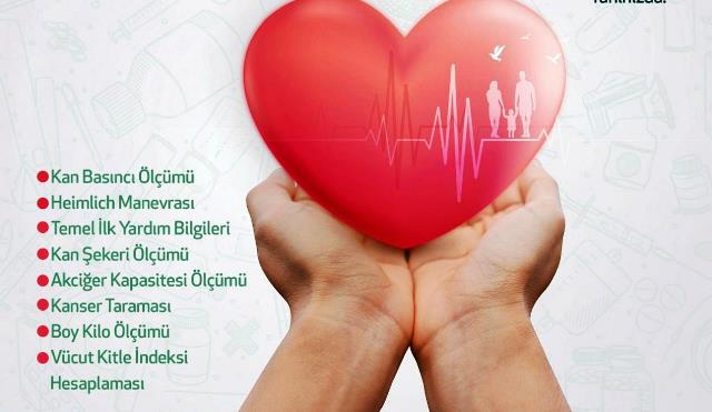 Etkinlikte Kan basıncı ölçümü, Heimlich Manevrası, Temel İlk yardım bilgileri, Kan Şekeri ölçümü, Akciğer kapasitesi ölçümü, Kanser taraması, Boy kilo ölçümü, Vücut kitle indksi hesaplaması konularında uygulamalar yapılacak.