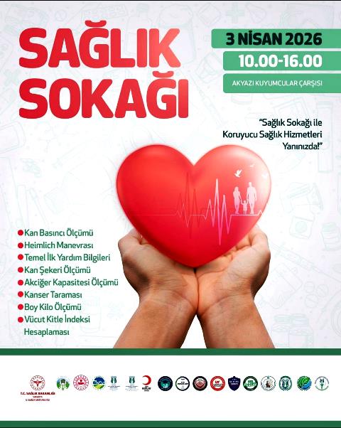 İlçe Sağlık Müdürlüğünün bu haftaki etkinliği çarşı içinde kuyumcular çarşısında gerçekleşecek. İlçe Sağlık Müdürü Dr. Şeyda Tok 3 Nisan Cuma günü yapılacak etkinliğe Tüm Akyazı’lı vatandaşları davet etti.
