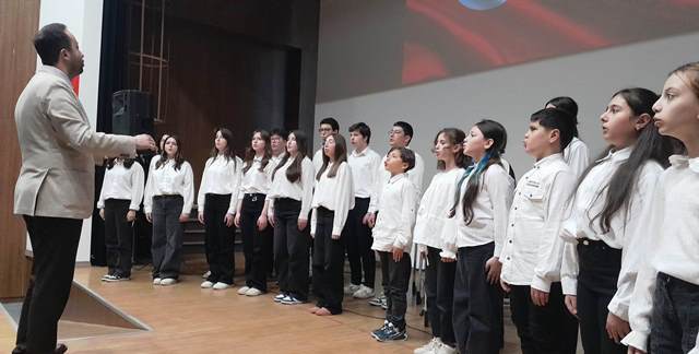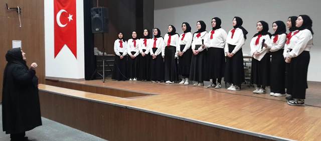 Orta okul bölümü öğrencilerinin korosu ile program tamamlandı.