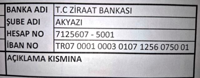 Fındık toplama kira bedelinin 400 lira olduğunun da altını çizen Muhtar Ünlütürk, ödeme yapacak olan kişilerin dekontlarına T.C. numarası, adı soyadı ve mahalle ismi ile F-N-A ödemesi diye yazdırmaları gerektiğini söyledi ve dekontlarında saklanmasını istedi.