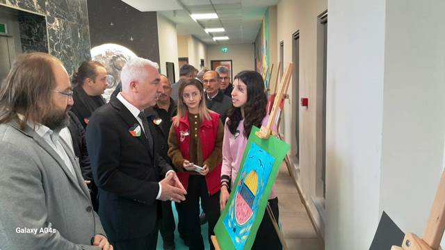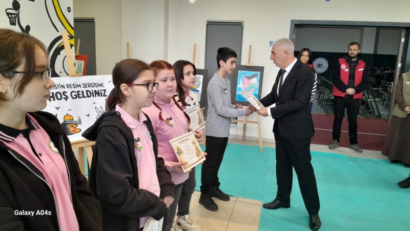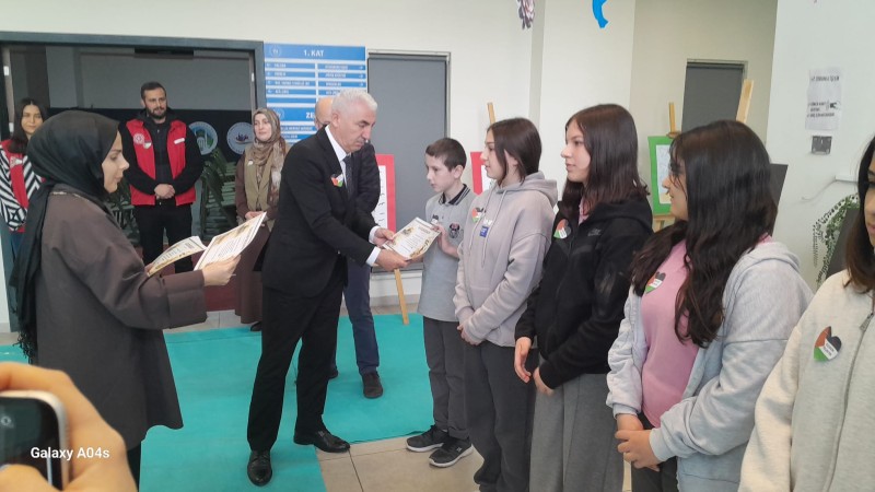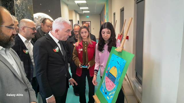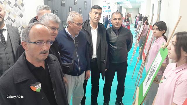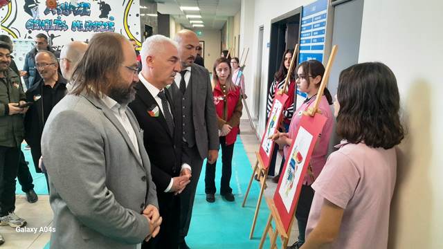 Atatürk Ortaokulu öğrencileri tarafından yapılan resimlerde öğrencilerin Filistin temasını işlemeleri ve yaptıkları temaya ilişkin resimlerle dikkat çekti.