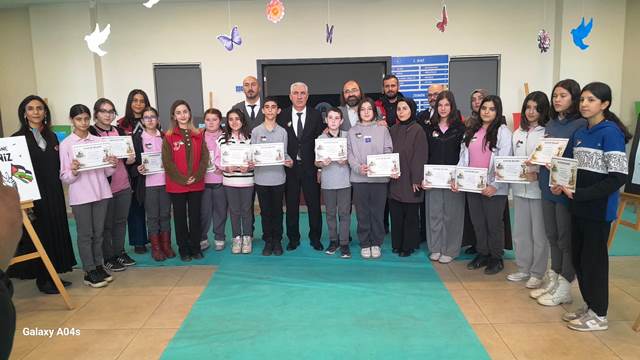 Gezilen serginin ardından sergiye resimleri ile katılan ve sergiyi ziyaret eden tüm öğrencilere katılım belgesi verildi.
