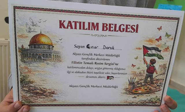 Akyazı İlçe Milli Eğitim Müdürü Hasan Can, Akyazı Atatürk Ortaokulu Müdürlüğü ve İlçe Spor Müdürlüğü bünyesinde faaliyetlerini sürdürmekte olan Gençlik Merkezi Müdürlüğü ile ortaklaşa düzenlenen ve Recep Tayyip Erdoğan Spor kompleksinde gerçekleşen Filistin temalı resim sergisinin açılışını gerçekleştirdi.