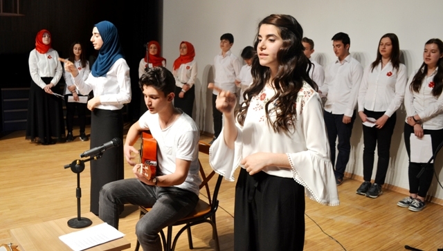 Ardından Güzel şiir okuma yarışmasında birinci olan Anadolu Lisesi öğrencisi Hilal Kurt İstiklal marşımızın tamamını okudu.
