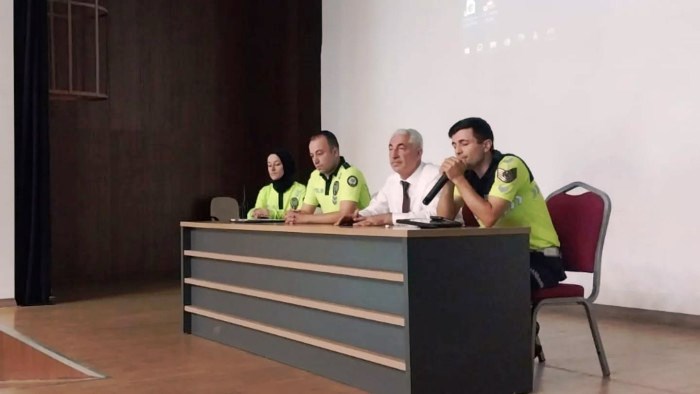 İlçe Milli Eğitim Müdürü Hasan Can, Okul Müdürleri ve Servis Şoförlerinin katıldığı ve Sosyal Gelişim Merkezinde yapılan seminerde bilgilendirme İlçe Emniyet ve Jandarmanın trafik ekipleri tarafından yapıldı.