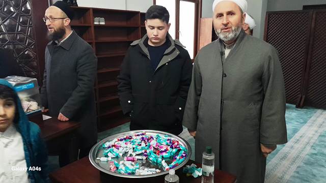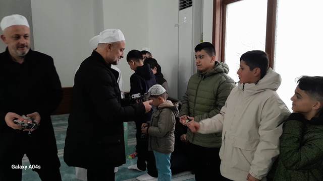 Darul Kurra Camiinde bayram namazlarına yakınları ile katılan çocuklara cami derneği tarafından bayram harçlıkları verildi.