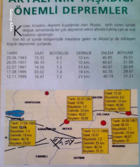 Güzel yurdumuz deprem kuşağında her zaman deprem olmuştur ve olmaya da devam ediyor. Akyazı’mız önemli fay hatlarının üzerinde bulunuyor. Bu nedenle depreme hazırlıklı olmalı, eğitimli olmalı, depremle iç içe nasıl yaşanılır öğrenmek ve hazırlıklı olmak zorundayız.