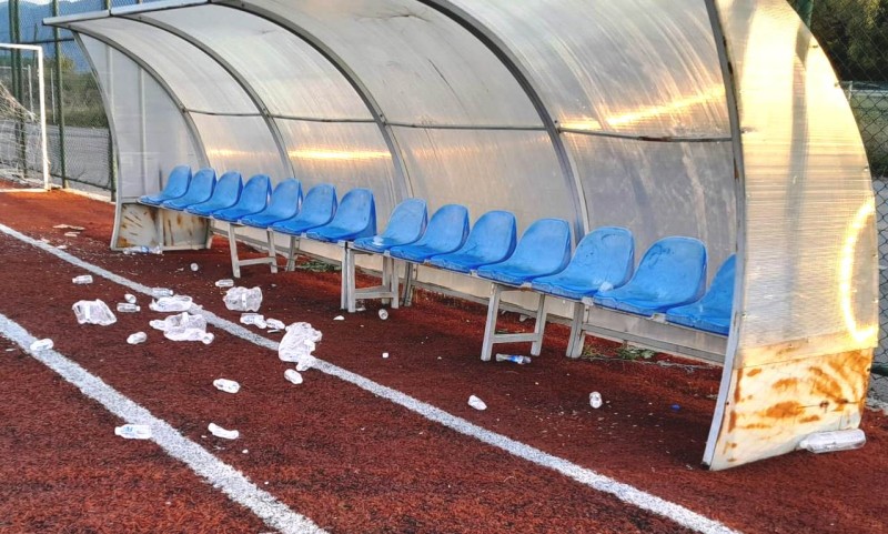 Maçı Kazanan Alaağaçspor lu sporcu ve yöneticileri hakemin bitiş düdüğü ile arkalarında  ne bıraktıklarına bakmadan oturdukları kulübenin önündeki çöpleri bırakarak soyunma odasının yolunu tuttular.
