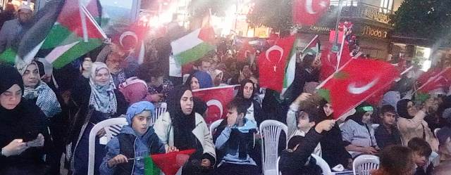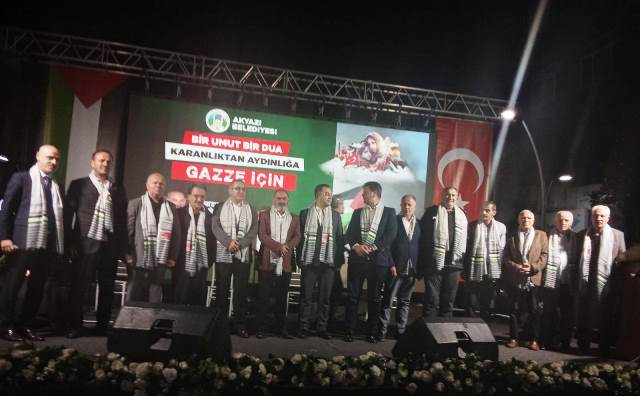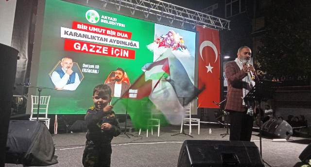 İnsanlık suçu işlenen ve insanlık dramı yaşanan Gazze’ye destek amaçlı olarak Akyazı belediyesi tarafından düzenlenen “Bir Umut bir Dua, karanlıktan aydınlığa” temalı geceye yüzlerce Akyazılı katıldı. Geceye katılan ve Filistinlilere dualarını gönderen Akyazılılar, İsraillileri de lanetlediler ve attıkları sloganlarla da kınadılar.